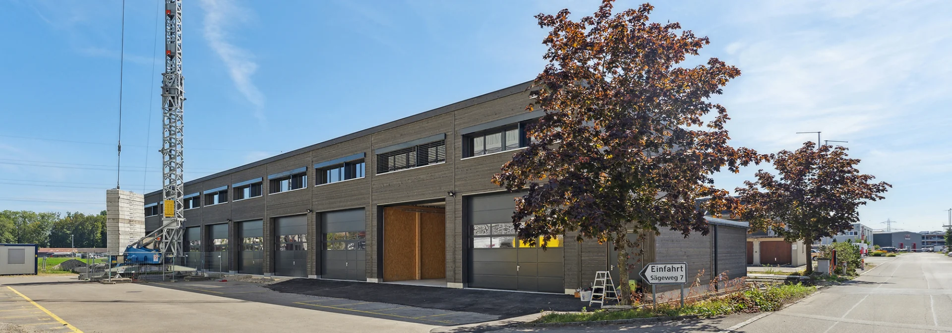 Die Gewerbeeinheiten werden nachhaltig in Holzbauweise mit Schafwolldämmung erstellt und mittels Wärmepumpen beheizt. Die Gewerbeboxen bieten Platz für kleinere Unternehmen mit einem grossen Sektionaltor (4×5 Meter) und einer Administrationsfläche im 1. OG. Die einfache Zufahrt und Erschliessung jeder einzelnen Einheit ermöglicht ein hohes Mass an Flexibilität.